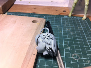 把斷掉的邊緣削薄後(讓補土能包住零件,增加咬合力),補上寶麗補土;經過一個多小時的奮戰後,結果如下