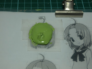 打完以上廢話,就正式的來介紹製作過程吧!製作前,我習慣先弄出一張1:1的設定圖來作為製作時的參考,這次作為範例的是A Channel的るん,把設定圖放入資料夾後在正面的臉上貼上透明膠帶。