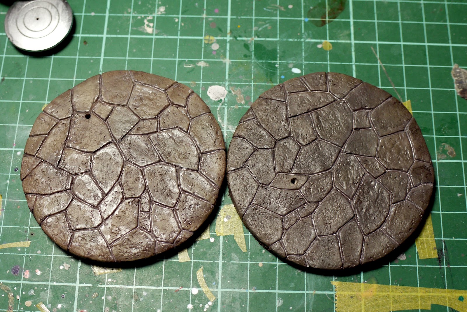 這次特別搞了一個石板底座;先用美國土雕出石磚的造型,再用鋁箔紙揉成一團壓出石頭的質感,最後再塗琺瑯漆溶劑柔化一下表面。