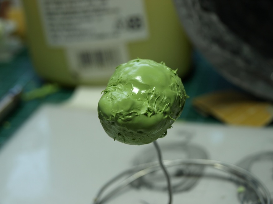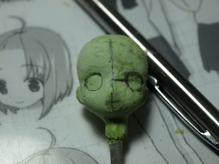 然後就直接塗上補土,作為整個頭部的基底,雖然很多書都教人從球體開始做,不過那樣我反而會花更多時間抓形狀....所以現在都是從本壘版造型開始