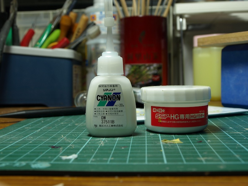 當然不是CYANON原液就直接補上去,而是混入↓SSP-HG的樹脂粉,也就是用CYANON來取代SSP-HG的瞬間膠,用爽身粉應該也可以吧(´・ω・`)